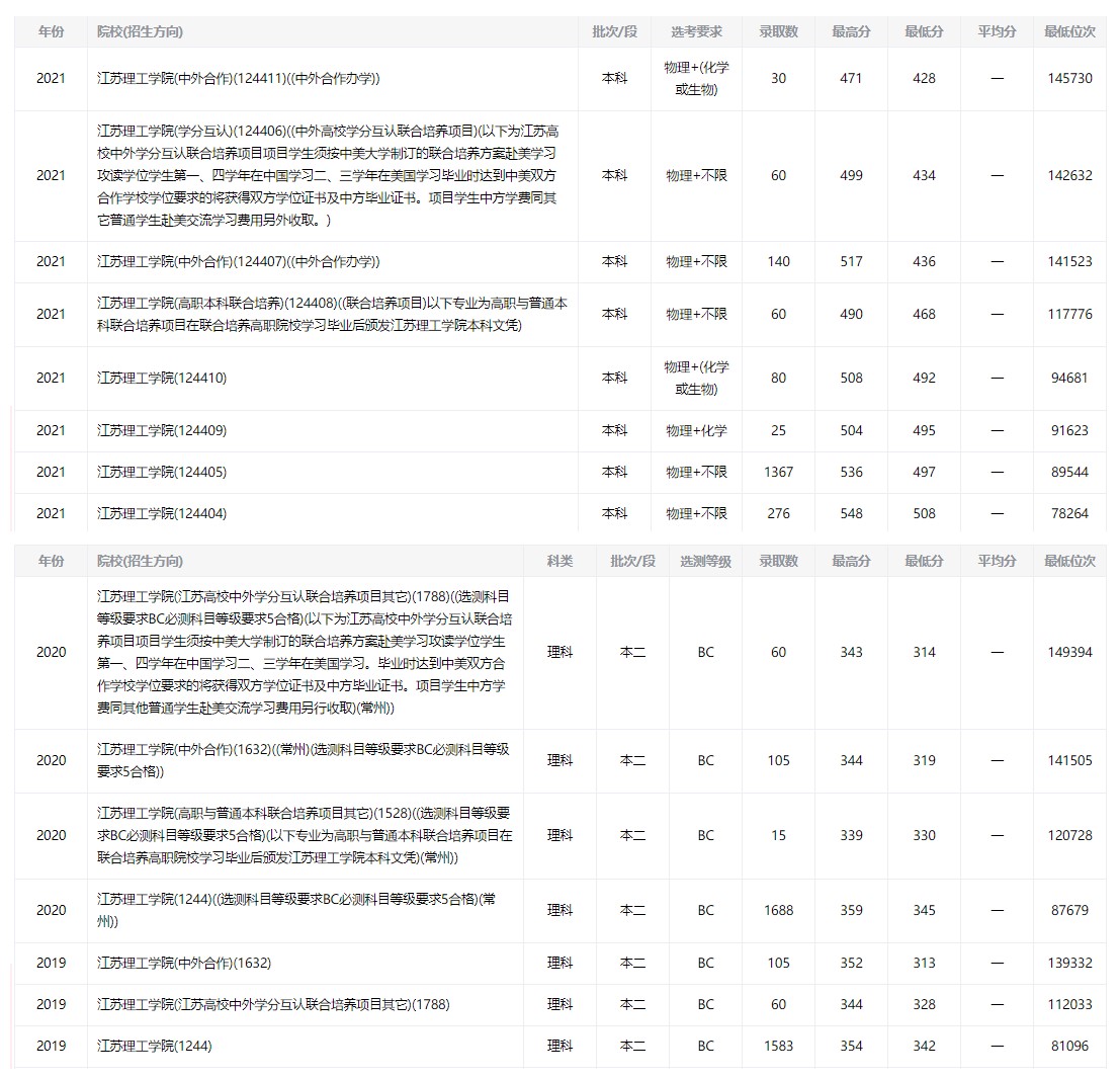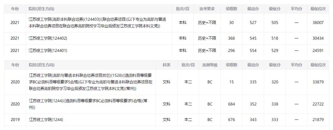 2 2022年江蘇理工學(xué)院錄取分?jǐn)?shù)線及位次● 由于2022年江蘇理工學(xué)院錄取分?jǐn)?shù)線還未公布,各位考生和家長可以參考往年的江蘇理工學(xué)院專業(yè)錄取分?jǐn)?shù)線和位次,同時也可以添加江蘇升學(xué)指導(dǎo)中心志愿填報指導(dǎo)老師咨詢。 3 江蘇理工學(xué)院專業(yè)錄取情況● 1.理科(2020年) 2.文科(2020年)