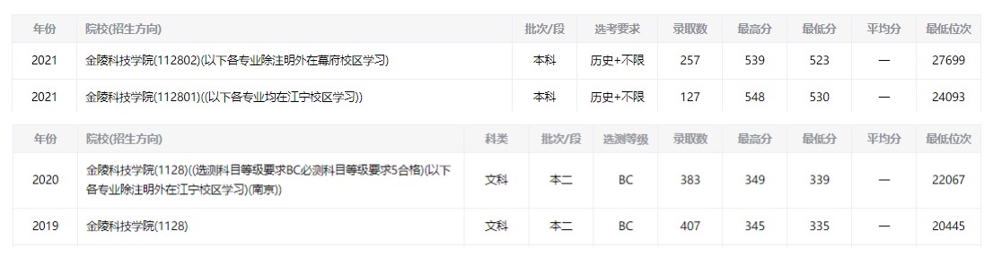 金陵科技學(xué)院近三年分?jǐn)?shù)線及位次