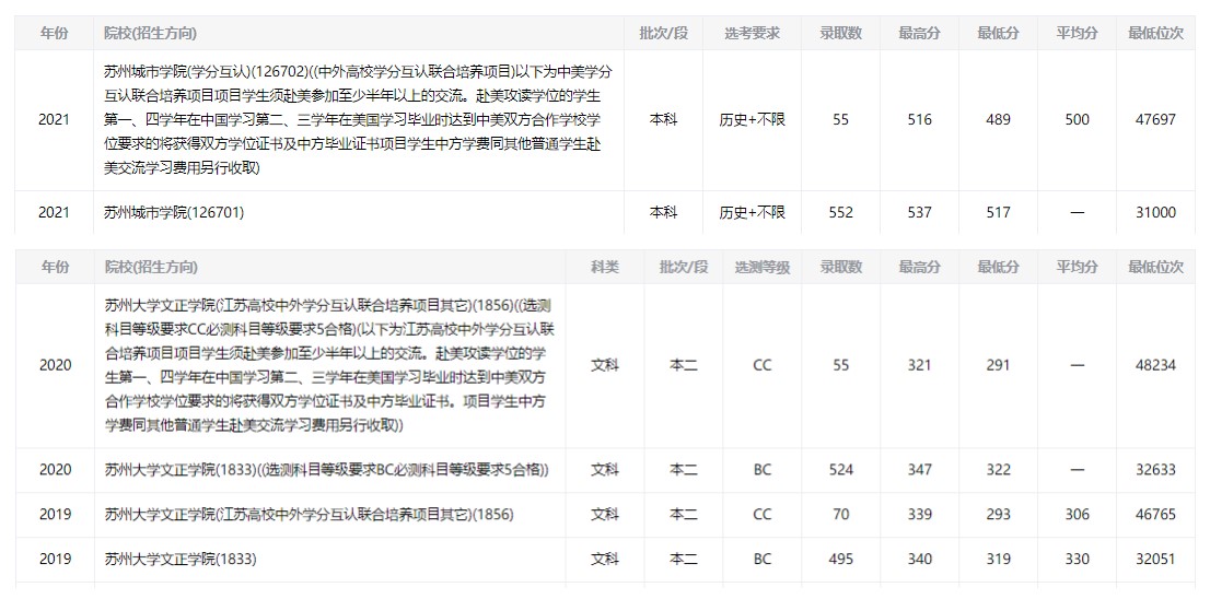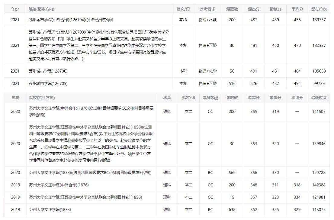 2 2022年蘇州城市學(xué)院錄取分?jǐn)?shù)線及位次● 由于2022年蘇州城市學(xué)院錄取分?jǐn)?shù)線還未公布,各位考生和家長可以參考往年的蘇州城市學(xué)院專業(yè)錄取分?jǐn)?shù)線和位次,同時也可以添加江蘇升學(xué)指導(dǎo)中心志愿填報指導(dǎo)老師咨詢。 3 蘇州城市學(xué)院專業(yè)錄取情況● 1.理科(2020年) 2.歷史(2021年)
