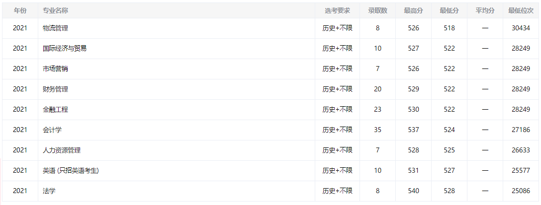 3 無(wú)錫學(xué)院專業(yè)錄取情況● 1.物理(2021年) 2.歷史(2021年)