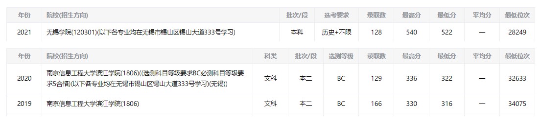2 2022年無(wú)錫學(xué)院錄取分?jǐn)?shù)線及位次●