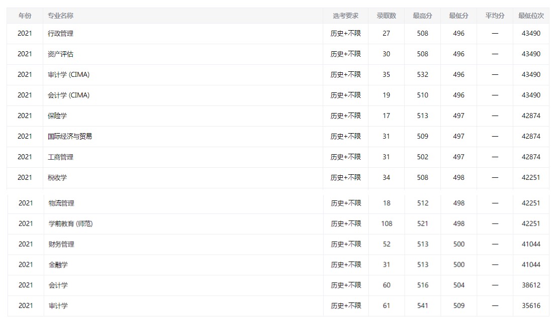 3 南京審計大學(xué)金審學(xué)院專業(yè)錄取情況● 1.物理(2021年) 2.歷史(2021年)