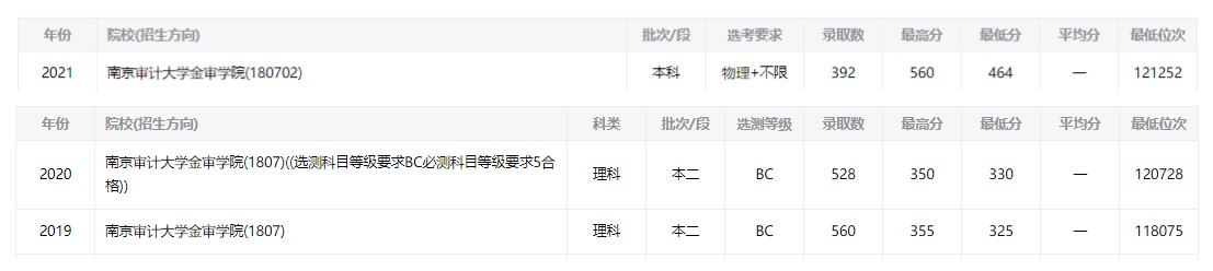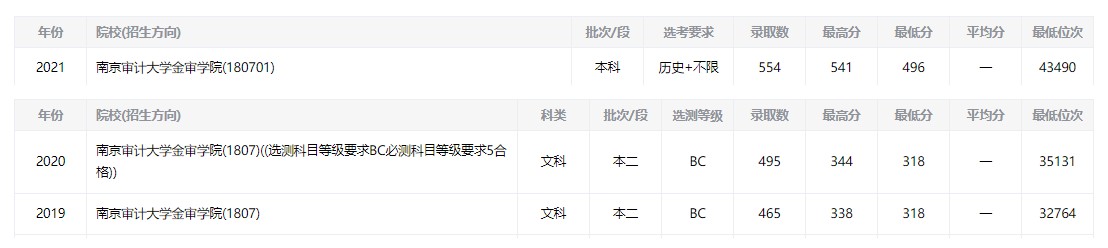 南京審計大學(xué)金審學(xué)院2022錄取分?jǐn)?shù)線是多少,各專業(yè)錄取分?jǐn)?shù)線及對應(yīng)的位次是多少,是每個填報南京審計大學(xué)金審學(xué)院的考生最關(guān)注的問題,隨著江蘇省高考錄取批次的公布,考生也開始關(guān)心是否被南京審計大學(xué)金審學(xué)院的錄取,江蘇升學(xué)指導(dǎo)中心志愿填報指導(dǎo)吳老師,整理出了南京審計大學(xué)金審學(xué)院歷年相關(guān)錄取信息,供考生參考,希望對大家有所幫助!