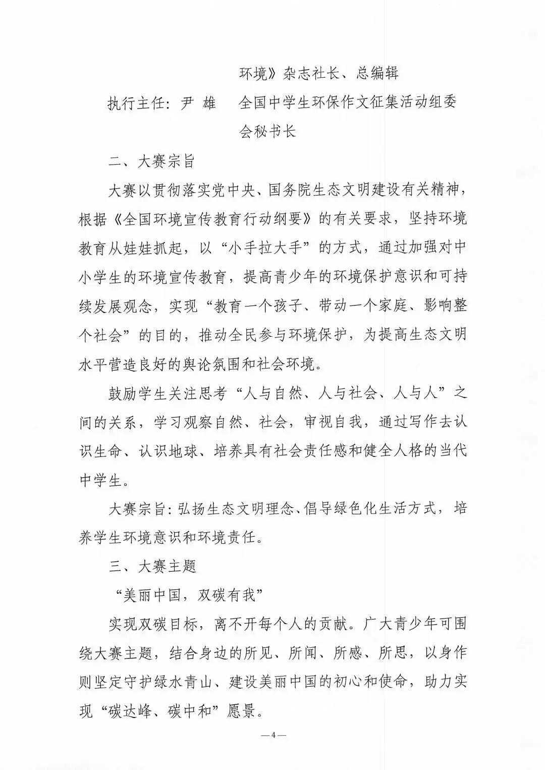 第四屆全國(guó)中學(xué)生環(huán)境保護(hù)優(yōu)秀作文征集活動(dòng)已經(jīng)開(kāi)啟,高三組活動(dòng)報(bào)名及作品提交時(shí)間10月20日—12月25日,高一、二組活動(dòng)報(bào)名及作品提交時(shí)間10月20日—4月30日,具體內(nèi)容方式參考以下通知。