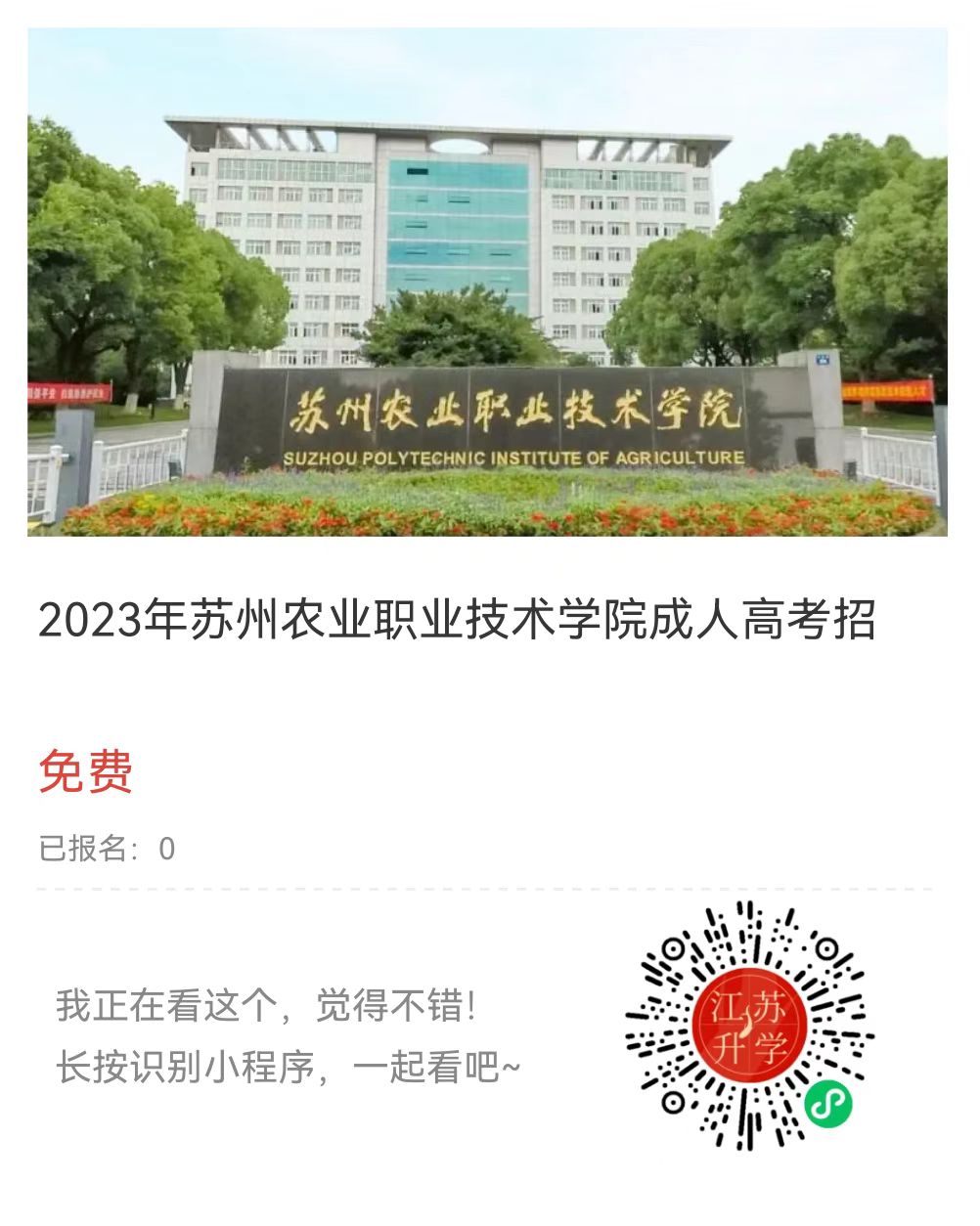 一、學(xué)校簡介 蘇州農(nóng)業(yè)職業(yè)技術(shù)學(xué)院始建于清光緒三十三年(1907年),初名為蘇州府官立農(nóng)業(yè)學(xué)堂。學(xué)院現(xiàn)有西園路校本部、東山校區(qū)和相城校區(qū)等三個校區(qū),占地面積1616畝。設(shè)有園藝科技學(xué)院、園林工程學(xué)院、食品科技學(xué)院、經(jīng)濟(jì)管理學(xué)院、智慧農(nóng)業(yè)學(xué)院、環(huán)境工程學(xué)院、國際教育學(xué)院、馬克思主義學(xué)院、創(chuàng)新創(chuàng)業(yè)學(xué)院、繼續(xù)教育學(xué)院(蘇州農(nóng)民學(xué)院)等10個二級學(xué)院,招生專業(yè)38個,面向全國17個省、自治區(qū)招生,全日制在校生近萬人。 學(xué)院秉承“勵志耕耘,樹木樹人”校訓(xùn),堅(jiān)持“立足蘇南,服務(wù)三農(nóng),緊扣特色,爭創(chuàng)一流”辦學(xué)思路,致力于打造“江南農(nóng)耕文化弘揚(yáng)者、園藝職業(yè)教育開拓者、蘇州園林技藝傳承者、智慧農(nóng)業(yè)建設(shè)領(lǐng)跑者、國際職業(yè)農(nóng)民培育和輸出探路者”等五張名片,取得了一批重大辦學(xué)成果和榮譽(yù):入選國家優(yōu)質(zhì)??聘叩嚷殬I(yè)院校、中國特色高水平高等職業(yè)學(xué)校和專業(yè)建設(shè)計(jì)劃建設(shè)單位,榮獲國家級教學(xué)成果獎一等獎、全國高職院校服務(wù)貢獻(xiàn)五十強(qiáng)、全國高職院校國際影響力五十強(qiáng)、全國高校信息化教學(xué)大賽一等獎、全國職業(yè)院校技能大賽一等獎、全國農(nóng)牧漁業(yè)豐收獎、荷蘭世界園藝博覽會最高獎、2016土耳其安塔利亞世園會最高獎和組委會金獎等諸多榮譽(yù),連續(xù)七次被授予“江蘇省文明單位”。 二、報(bào)名條件 1.成人大專:具有普通高中、中專、職高、技校畢業(yè)證書的畢業(yè)生及具有同等學(xué)力的社會其他人員。 三、招生專業(yè) 四、學(xué)習(xí)費(fèi)用 學(xué)生在校期間的學(xué)習(xí)費(fèi)用,嚴(yán)格按江蘇省蘇價(jià)費(fèi)(2007)271號文件規(guī)定執(zhí)行(文史類專業(yè)1700元/學(xué)年、理工類專業(yè)1900元/學(xué)年),書籍講義費(fèi)等自理。(如有新文件規(guī)定則按新標(biāo)準(zhǔn)執(zhí)行) 五、考試科目 高起專理工類(550)需考語文、數(shù)學(xué)(理)、外語;文史類(510)需考語文、數(shù)學(xué)(文)、外語。 六、畢業(yè)與學(xué)位 成人大專:學(xué)生修完本專業(yè)教學(xué)計(jì)劃規(guī)定的課程(英語、計(jì)算機(jī)全省統(tǒng)考),成績合格,符合畢業(yè)條件者,由常州機(jī)電職業(yè)技術(shù)學(xué)院頒發(fā)經(jīng)省教育廳驗(yàn)印和國家教育部電子注冊的成人高等教育??飘厴I(yè)文憑。 七、報(bào)名方式 在線報(bào)名:登錄江蘇升學(xué)指導(dǎo)中.心成人高考預(yù)報(bào)名系統(tǒng),填寫個人姓名、聯(lián)系電話、選擇院校及專業(yè),提交的報(bào)名信息后工作人員將會在24小時內(nèi)進(jìn)行回復(fù)確認(rèn)。 七、考試流程 九、報(bào)名咨詢 小程序免費(fèi)報(bào)名→填入個人信息→等候招生老師聯(lián)系(1—3個工作日) 直接聯(lián)系招生老師