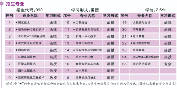 一、學(xué)校簡介 南通科技職業(yè)學(xué)院創(chuàng)辦于1945年,是一所經(jīng)江蘇省人民政府批準(zhǔn)的公辦全日制普通高校,地處有“中國近代第一城”之稱的南通市主城區(qū),為江蘇省示范性高等職業(yè)技術(shù)院校。 我校在辦好全日制普通??平逃耐瑫r(shí),充分利用學(xué)校的優(yōu)質(zhì)教育資源,積極開展繼續(xù)教育。2005年經(jīng)省教育廳批準(zhǔn)取得獨(dú)立招收成人大專資格。學(xué)校設(shè)有專門的教學(xué)機(jī)構(gòu)——繼續(xù)教育學(xué)院,負(fù)責(zé)全校的成人學(xué)歷教育、自學(xué)考試、資格證書培訓(xùn)和政府專項(xiàng)培訓(xùn)等。目前,已形成多形式、多層次、多專業(yè)的繼續(xù)教育辦學(xué)體系?,F(xiàn)有機(jī)械制造與自動(dòng)化、商務(wù)日語、計(jì)算機(jī)信息管理、園藝技術(shù)、作物生產(chǎn)技術(shù)、經(jīng)濟(jì)管理、物流管理、會(huì)計(jì)與統(tǒng)計(jì)核算、農(nóng)村行政管理等28個(gè)成人函授或業(yè)余??茖I(yè)。南京農(nóng)業(yè)大學(xué)、西南科技大學(xué)等著名高校在我校設(shè)立成人本科教育函授站,開設(shè)國際貿(mào)易、物流管理、會(huì)計(jì)、信息管理與信息系統(tǒng)、園藝、園林、農(nóng)學(xué)、植保等本科函授專業(yè);學(xué)院積極開展職業(yè)資格證書培訓(xùn),現(xiàn)有物流職業(yè)經(jīng)理、內(nèi)審員、報(bào)關(guān)員、單證員、跟單員等培訓(xùn)項(xiàng)目;學(xué)院堅(jiān)持服務(wù)“三農(nóng)”,積極面向農(nóng)村和社會(huì)開展各種培訓(xùn),近三年來,承擔(dān)了省農(nóng)民創(chuàng)業(yè)培訓(xùn)、農(nóng)技推廣骨干人才培訓(xùn)和退役士兵技能培訓(xùn)等培訓(xùn)任務(wù),共培訓(xùn)學(xué)員近50000人次,先后被確定為“江蘇省現(xiàn)代農(nóng)業(yè)技術(shù)培訓(xùn)基地”、“江蘇省農(nóng)民培訓(xùn)基地”、“江蘇省陽光工程農(nóng)民培訓(xùn)基地”、“江蘇省退役士兵技能培訓(xùn)基地”、“江蘇省電子商務(wù)人才培訓(xùn)基地”、“南通市村(社區(qū))干部教育培訓(xùn)基地”、“南通市勞動(dòng)就業(yè)培訓(xùn)中心農(nóng)村勞動(dòng)力培訓(xùn)基地”。我院繼續(xù)教育工作經(jīng)過十多年的發(fā)展,各方面已逐步規(guī)范,趨于成熟,已成為學(xué)院人才培養(yǎng)的重要組成部分,2016年繼續(xù)教育學(xué)院被省教育廳表彰為“江蘇省教育工作先進(jìn)集體。 在全國大力發(fā)展繼續(xù)教育,構(gòu)建學(xué)習(xí)型社會(huì)的形勢下,我院緊緊抓住繼續(xù)教育的發(fā)展機(jī)遇,堅(jiān)持“優(yōu)質(zhì)辦學(xué),服務(wù)社會(huì)”的宗旨,積極探索繼續(xù)教育管理新模式,進(jìn)一步完善管理制度,提高教學(xué)質(zhì)量,為社會(huì)提供優(yōu)質(zhì)高等教育服務(wù),為地方經(jīng)濟(jì)建設(shè)和發(fā)展作出了應(yīng)有的貢獻(xiàn)。 二、報(bào)名條件 1.成人大專:具有普通高中、中專、職高、技校畢業(yè)證書的畢業(yè)生及具有同等學(xué)力的社會(huì)其他人員。 2.專升本:取得經(jīng)教育部審定核準(zhǔn)的國民教育系列高等學(xué)校、高等教育自學(xué)考試機(jī)構(gòu)頒發(fā)的專科(或?qū)?埔陨希┊厴I(yè)證書的人員。 三、招生專業(yè) 高起專 專升本 四、學(xué)習(xí)費(fèi)用 嚴(yán)格按照省教育廳、財(cái)政廳、物價(jià)局有關(guān)文件規(guī)定標(biāo)準(zhǔn)收取費(fèi)用(本科學(xué)費(fèi):理工類、農(nóng)學(xué)類2200元/年,經(jīng)管類、法學(xué)類、文史類2000元/年,藝術(shù)類3200元/年)。 學(xué)生在校期間的學(xué)習(xí)費(fèi)用,嚴(yán)格按江蘇省蘇價(jià)費(fèi)(2007)271號文件規(guī)定執(zhí)行(文史類專業(yè)1700元/學(xué)年、理工類專業(yè)1900元/學(xué)年),書籍講義費(fèi)等自理。(如有新文件規(guī)定則按新標(biāo)準(zhǔn)執(zhí)行) 五、考試科目 專升本入學(xué)需要參加全國成人高考,報(bào)考理工類專業(yè),需考政治、英語、高等數(shù)學(xué)(一);報(bào)考經(jīng)管類專業(yè),需考政治、英語、高等數(shù)學(xué)(二)。每門課程滿分150分,總分450分。 高起專理工類(550)需考語文、數(shù)學(xué)(理)、外語;文史類(510)需考語文、數(shù)學(xué)(文)、外語。 六、畢業(yè)與學(xué)位 成人大專:學(xué)生修完本專業(yè)教學(xué)計(jì)劃規(guī)定的課程(英語、計(jì)算機(jī)全省統(tǒng)考),成績合格,符合畢業(yè)條件者,由常州機(jī)電職業(yè)技術(shù)學(xué)院頒發(fā)經(jīng)省教育廳驗(yàn)印和國家教育部電子注冊的成人高等教育專科畢業(yè)文憑。 專升本:學(xué)生修完本專業(yè)教學(xué)計(jì)劃規(guī)定的課程,成績合格,符合畢業(yè)條件者,由專升本主辦高校頒發(fā)經(jīng)省教育廳驗(yàn)印和國家教育部電子注冊的成人高等教育本科畢業(yè)文憑;符合學(xué)士學(xué)位授予條件的本科畢業(yè)生,可向?qū)I局鬓k高校申請學(xué)士學(xué)位。 七、報(bào)名方式 在線報(bào)名:登錄江蘇升學(xué)指導(dǎo)中.心成人高考預(yù)報(bào)名系統(tǒng),填寫個(gè)人姓名、聯(lián)系電話、選擇院校及專業(yè),提交的報(bào)名信息后工作人員將會(huì)在24小時(shí)內(nèi)進(jìn)行回復(fù)確認(rèn)。 七、考試流程 九、報(bào)名