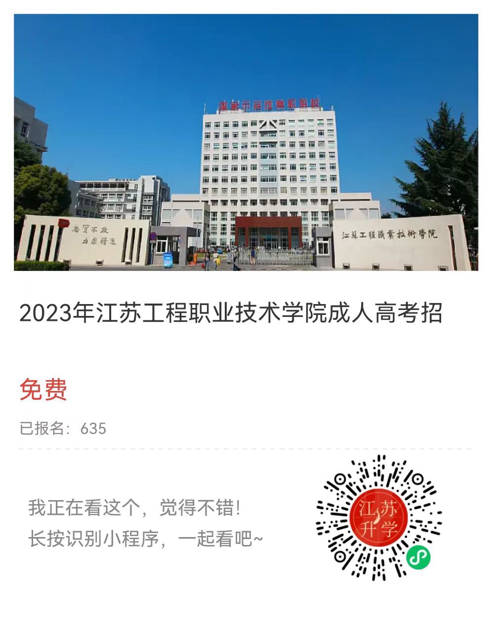 一、學(xué)院概況 江蘇工程職業(yè)技術(shù)學(xué)院是一所省屬公辦全日制普通高等學(xué)校,現(xiàn)已成為國家示范性高職院校、國家優(yōu)質(zhì)高等職業(yè)院校、國家“雙高計劃”高水平專業(yè)群建設(shè)單位和江蘇省高水平高職院校建設(shè)單位。學(xué)校創(chuàng)建于1912年,是一所百年老校,為江蘇乃至全國的經(jīng)濟社會建設(shè)和發(fā)展培養(yǎng)了大量的優(yōu)秀人才。 學(xué)校設(shè)有紡織服裝學(xué)院、建筑工程學(xué)院、機電工程學(xué)院、商學(xué)院、藝術(shù)設(shè)計學(xué)院、航空與交通工程學(xué)院、信息工程學(xué)院等7個二級學(xué)院42個專業(yè)?,F(xiàn)有全日制在校學(xué)生1萬多名,繼續(xù)教育學(xué)員3000多名。學(xué)校擁有一批高素質(zhì)的教師隊伍,擁有一大批研發(fā)中心、創(chuàng)新中心、實訓(xùn)基地和各類服務(wù)平臺。 繼續(xù)教育學(xué)院依托學(xué)校優(yōu)良的辦學(xué)條件和辦學(xué)實力,積極開展成人學(xué)歷繼續(xù)教育和非學(xué)歷繼續(xù)教育培訓(xùn)業(yè)務(wù),以嚴(yán)謹(jǐn)?shù)慕虒W(xué)、嚴(yán)格的管理、優(yōu)質(zhì)的服務(wù),為社會和廣大企事業(yè)單位培養(yǎng)更多更好的高技能人才。 二、招生對象及條件 普通高中、中專、技校、職高及相當(dāng)于高中層次的應(yīng)屆(歷屆)畢業(yè)生。 三、2022年招生專業(yè) 1、學(xué)歷層次: 高起專 2、學(xué)制: 2.5年;學(xué)習(xí)形式:函授; 3、招生專業(yè): 四、考試科目 高起專入學(xué)需要參加全國成人高考語文、數(shù)學(xué)、英語 (高中文化程度) 五、畢業(yè)與學(xué)位 畢業(yè)條件: 學(xué)生學(xué)完教學(xué)計劃規(guī)定的全部課程,成績合格、思想品德符合畢業(yè)條件。 六、報名方式 1、在線報名:登錄江蘇升學(xué)指導(dǎo)中.心成人高考預(yù)報名系統(tǒng),填寫個人姓名、聯(lián)系電話、選擇院校及專業(yè),提交的報名信息后工作人員將會在24小時內(nèi)進行回復(fù)確認(rèn)。 七、考試流程 八、報名咨詢 掃碼進入小程序免費報名→填入個人信息→等候招生老師聯(lián)系(1—3個工作日) 直接聯(lián)系招生老師
