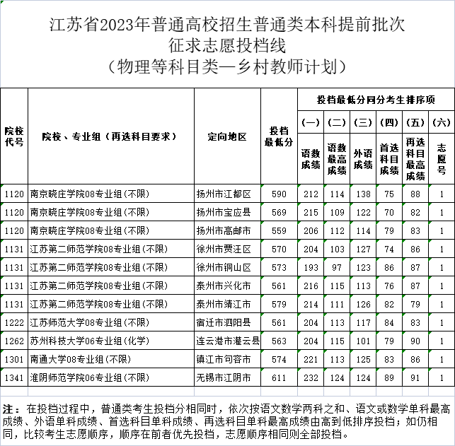 江蘇2023年普通類本科提前批征求志 愿投檔線(鄉(xiāng)村教師計(jì)劃)