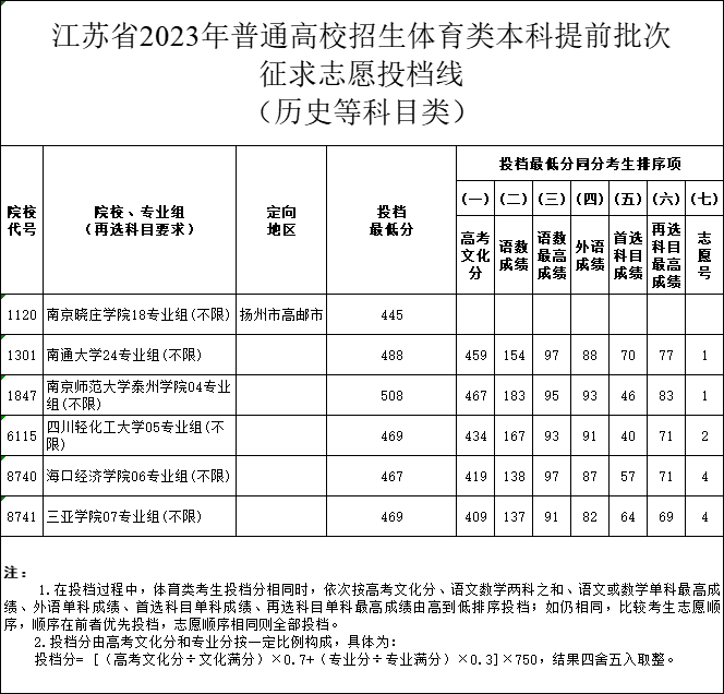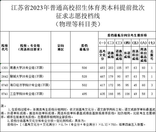 江蘇省2023年普通高校招生體育類本科提前批次征求志愿投檔線出爐了,報考體育類院校征平志愿的考生家長快來看看吧。