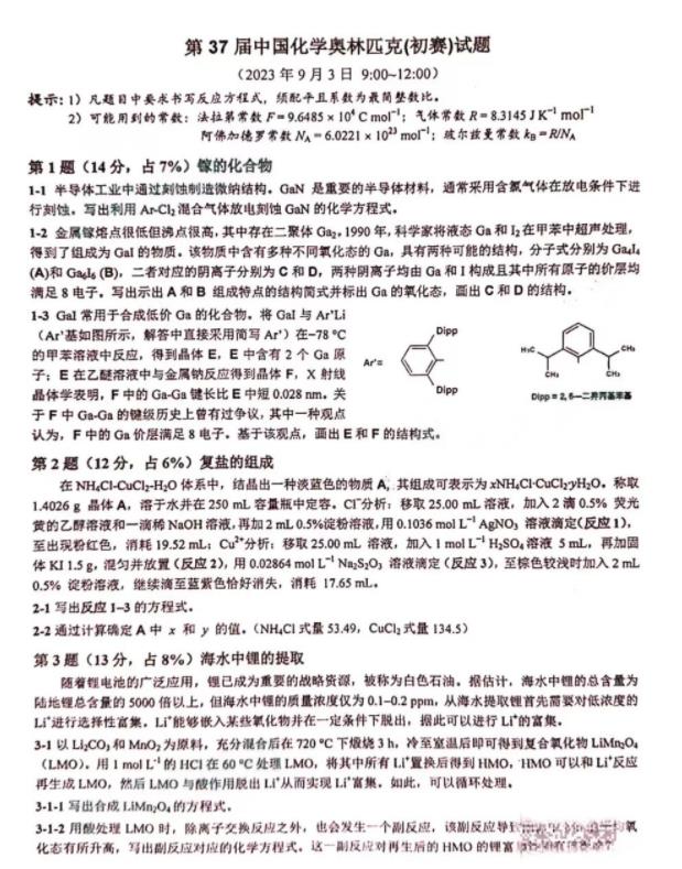 2023年第37屆中國化學(xué)奧林匹克(初賽)已經(jīng)結(jié)束了,江蘇招生考試網(wǎng)小編整理了試題、成績查詢時(shí)間,跟著江蘇招生考試網(wǎng)小編一起來看!
