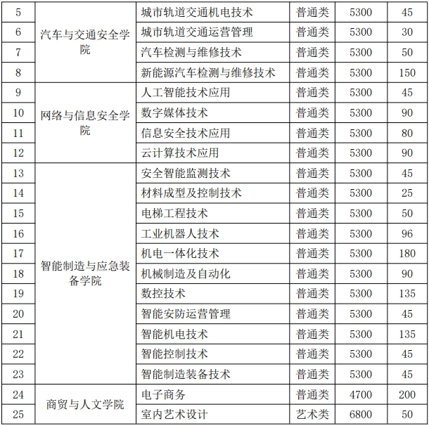 安全技術與管理、應急救援技術、安全智能監(jiān)測技術、建筑消防技術、智能安防運營管理、電梯工程技術、軌道交通類、室內(nèi)藝術設計、數(shù)字媒體技術專業(yè),色弱、色盲的考生限報。建筑消防技術、應急救援技術、電梯工程技術等專業(yè)建議僅男性報考。