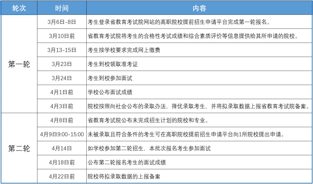 考生每一輪可填報1所高職院校,可向填報院校申請6個專業(yè)并明確專業(yè)調劑意向。