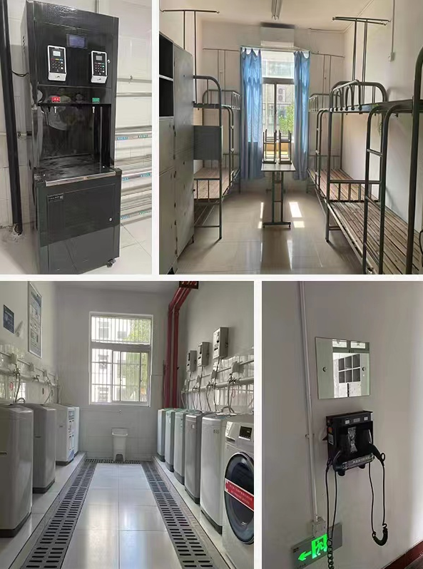 校內(nèi)住宿:六人間,四人住,上下鋪,公共衛(wèi)浴,有空調(diào),洗衣機(jī)