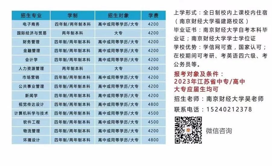 4.收費:4200學費+100報名費, 400書本費+200左右代辦費(每個學院不同),技能費5800元,住宿費2000左右 。今年雖然增加了技能費,但在同類高校中,總費用仍然是最低。有些學校一年就要2w+,南財公辦純學歷教學,沒有第三方技能機構介入,最終拿到的畢業(yè)證書含金量是一樣的。