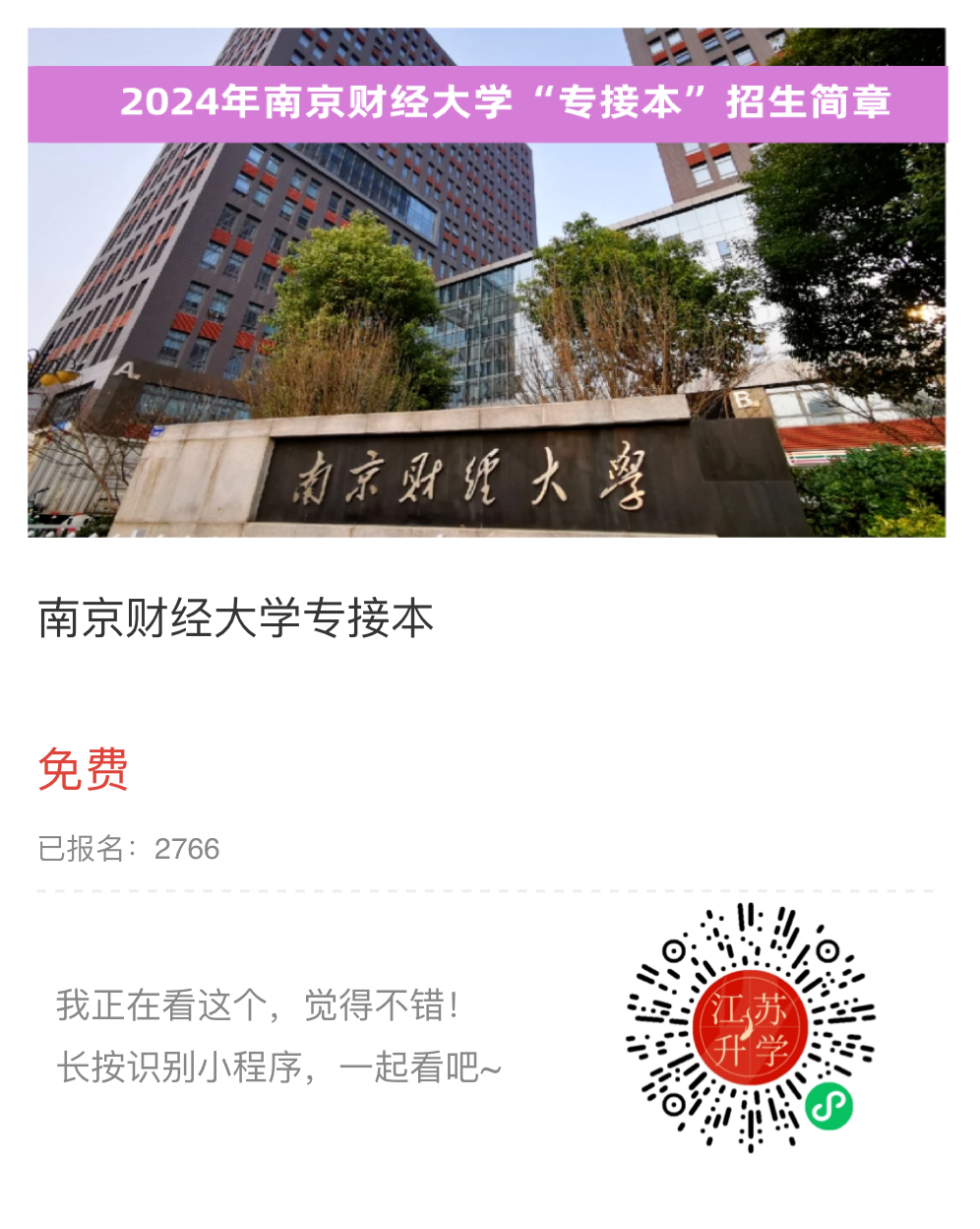 2.“專接本”的學制與層次為兩年制本科,學生完成本科段考試計劃規(guī)定的課程,獲得本科畢業(yè)證書。畢業(yè)證書由江蘇省高等教育自學考試委員會發(fā)放,學校附署蓋章,國家承認學歷。符合學士學位授予條件的學生,由我校授予學士學位。