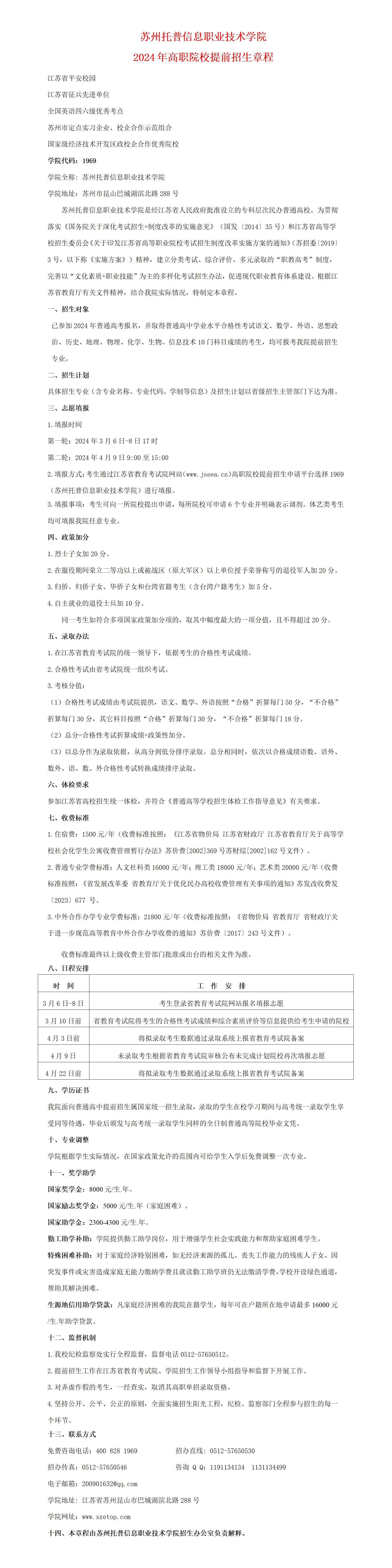 蘇州托普信息職業(yè)技術(shù)學(xué)院2024年高職院校提前招生章程