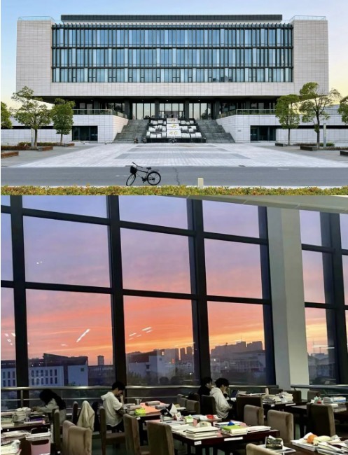 圖書館是學校學習氛圍的縮影,拾階而上進入圖書館內(nèi)部,遠離紛繁的人群,遨游在知識的海洋中。館內(nèi)靜謐莊重,充滿沉靜而深邃的學習氛圍。