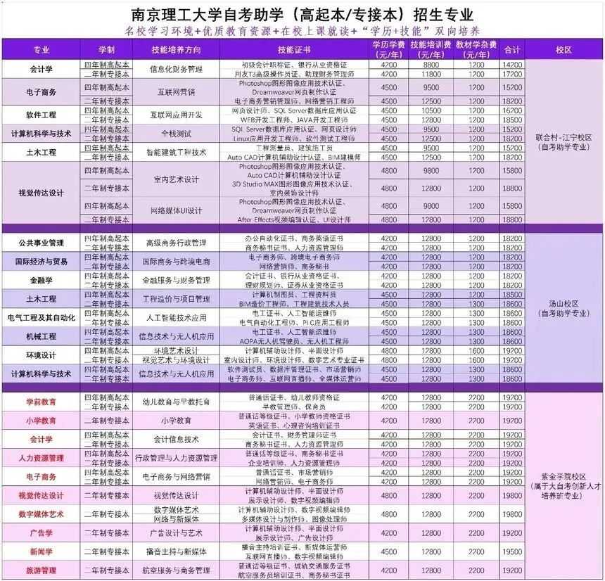 對(duì)于2025年的??飘厴I(yè)生來(lái)說(shuō),確實(shí)面臨著多樣化的升學(xué)路徑選擇。在探討這些選擇之前,首先要明確的是,??平逃鳛楦叩冉逃囊环N形式,為學(xué)生提供了專業(yè)技能和實(shí)踐能力的培養(yǎng)。然而,隨著社會(huì)對(duì)綜合素質(zhì)要求的提高,許多??飘厴I(yè)生選擇繼續(xù)深造,以提升自身的競(jìng)爭(zhēng)力和就業(yè)前景。 1. 專升本 專升本是最常見的??粕龑W(xué)路徑。通過(guò)參加專升本考試,專科畢業(yè)生有機(jī)會(huì)進(jìn)入本科階段學(xué)習(xí),獲得本科學(xué)歷。這一路徑的優(yōu)勢(shì)在于能夠系統(tǒng)地提升專業(yè)知識(shí)水平,增強(qiáng)綜合素質(zhì),并有機(jī)會(huì)獲得更廣泛的就業(yè)選擇。 建議: 提前了解目標(biāo)院校的專升本政策、考試科目和錄取標(biāo)準(zhǔn)。 制定復(fù)習(xí)計(jì)劃,注重基礎(chǔ)知識(shí)的學(xué)習(xí)和鞏固。 積極參加模擬考試,提高應(yīng)試能力。 其中,專轉(zhuǎn)本和專接本是兩條重要的升學(xué)渠道。許多學(xué)生可能會(huì)疑惑,這兩者是否可以同時(shí)進(jìn)行?答案是肯定的,江蘇專轉(zhuǎn)本和專接本不僅不沖突,還可以同步選擇,為學(xué)生的升學(xué)之路提供了雙重保障。 專接本則是本科院校的自主招生,是全日制學(xué)習(xí)的形式,與轉(zhuǎn)本一樣在本科院校就讀學(xué)習(xí)兩年。且入學(xué)門檻相對(duì)較低,無(wú)需入學(xué)考試,為那些擔(dān)心專轉(zhuǎn)本考試失利的同學(xué)提供了另一條可行的升學(xué)路徑。畢業(yè)生都將獲得主考院校的自考本科畢業(yè)證和學(xué)士學(xué)位。 2. 考研 雖然??飘厴I(yè)生直接考研的門檻較高,但并非不可能。一些高校允許??飘厴I(yè)生在畢業(yè)后兩年或更久的時(shí)間內(nèi),以同等學(xué)力身份報(bào)考研究生。然而,這通常需要考生具備出色的學(xué)習(xí)能力和學(xué)術(shù)背景。 建議: 提前了解目標(biāo)院校的考研政策和錄取標(biāo)準(zhǔn)。 加強(qiáng)專業(yè)知識(shí)的學(xué)習(xí),提高英語(yǔ)水平。 積極參加學(xué)術(shù)活動(dòng),積累研究經(jīng)驗(yàn)。 3. 出國(guó)留學(xué) 出國(guó)留學(xué)是另一種提升學(xué)歷和拓寬視野的途徑。對(duì)于??飘厴I(yè)生來(lái)說(shuō),可以選擇申請(qǐng)國(guó)外的本科或碩士課程。然而,這通常需要考生具備較好的英語(yǔ)水平、經(jīng)濟(jì)能力和獨(dú)立生活能力。 建議: 提前了解目標(biāo)國(guó)家的留學(xué)政策和申請(qǐng)流程。 加強(qiáng)英語(yǔ)或其他外語(yǔ)的學(xué)習(xí),提高語(yǔ)言能力。 準(zhǔn)備申請(qǐng)材料,如成績(jī)單、推薦信、個(gè)人陳述等。 4. 職業(yè)技能培訓(xùn) 除了傳統(tǒng)的升學(xué)路徑外,??飘厴I(yè)生還可以選擇參加職業(yè)技能培訓(xùn),以提升自身的專業(yè)技能和就業(yè)競(jìng)爭(zhēng)力。這種路徑通常更加靈活,可以根據(jù)個(gè)人興趣和職業(yè)規(guī)劃進(jìn)行選擇。 建議: 了解市場(chǎng)需求和職業(yè)發(fā)展趨勢(shì),選擇具有前景的技能培訓(xùn)項(xiàng)目。 注重實(shí)踐能力的培養(yǎng),積極參加實(shí)習(xí)和實(shí)踐活動(dòng)。 拓展人脈資源,與同行建立聯(lián)系。 作為2025年的??飘厴I(yè)生,面臨著多樣化的升學(xué)路徑選擇。在做出決策時(shí),應(yīng)充分考慮自己的興趣、職業(yè)規(guī)劃、經(jīng)濟(jì)能力和實(shí)際情況。同時(shí),要保持積極的心態(tài)和堅(jiān)定的信念,不斷追求進(jìn)步和成長(zhǎng)。 專接本 定義:專接本通常指的是??粕ㄟ^(guò)一定方式(如自考、成考、網(wǎng)絡(luò)教育等)提升到本科學(xué)歷的過(guò)程。在江蘇,專接本屬于計(jì)劃外招生,不屬于統(tǒng)招,是名額制招生。 特點(diǎn):學(xué)制靈活:專接本的學(xué)制和課程設(shè)置相對(duì)靈活,學(xué)生可以根據(jù)自身情況選擇學(xué)習(xí)方式和進(jìn)度。 名額有限:專接本的名額通常是有限的,采取先到先得的原則。 可同時(shí)與專轉(zhuǎn)本同時(shí)報(bào)考 優(yōu)勢(shì)在于 1、留后路:對(duì)于那些對(duì)專轉(zhuǎn)本信心不足的同學(xué)來(lái)說(shuō),同步選擇專轉(zhuǎn)本和專接本可以為自己留一條后路。如果專轉(zhuǎn)本考試未能如愿通過(guò),還可以憑借專接本的名額進(jìn)入本科院校學(xué)習(xí)。 2、減輕心理壓力:同時(shí)報(bào)考兩種升學(xué)方式可以在一定程度上減輕??飘厴I(yè)生的心理壓力,讓他們更加從容地面對(duì)升學(xué)挑戰(zhàn)。 “學(xué)歷+技能+就業(yè)推薦”三位一體的培養(yǎng)方式,學(xué)生入學(xué)以后,采取學(xué)歷技能同步培養(yǎng),增強(qiáng)學(xué)生專業(yè)技術(shù)能力與未來(lái)就業(yè)競(jìng)爭(zhēng)力。 優(yōu)勢(shì) ①學(xué)習(xí)環(huán)境:全日制學(xué)習(xí),無(wú)論是環(huán)境,學(xué)習(xí)氛圍,超過(guò)??圃盒?,享受大學(xué)優(yōu)質(zhì)教學(xué)資源,本科生,碩士生,這樣的氛圍,你不學(xué)不行。 ②學(xué)習(xí)效果:大學(xué)全日制自考本科不僅僅提供學(xué)歷教育,讓大家順利拿到本科證和學(xué)位雙證,更加注重技能培養(yǎng),企業(yè)優(yōu)質(zhì)培訓(xùn)師培訓(xùn)學(xué)習(xí),學(xué)歷技能平行發(fā)展。 2025屆三年制大專應(yīng)屆畢業(yè)生 2025