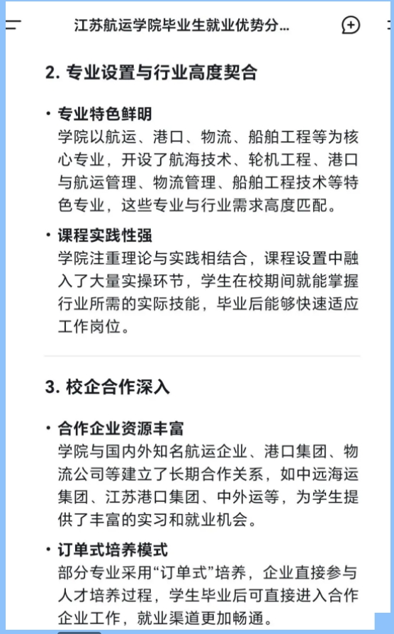 DeepSeek解讀江蘇航運學院畢業(yè)生就業(yè)優(yōu)勢
